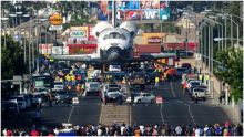 واضطر القائمون على الرحلة الأخيرة للمكوك إنديفور عبر شوارع لوس أنجلوس، لاتخاذ إجراءات "مؤلمة"، لفتح الطريق أمام المكوك البالغ عرضه 78 قدماً، أي ما يقرب من 24 متراً، وطوله 122 قدماً (أكثر من 37 متراً)، مثل قطع مئات الأشجار، وإزالة أعمدة الإشارات الضوئية.