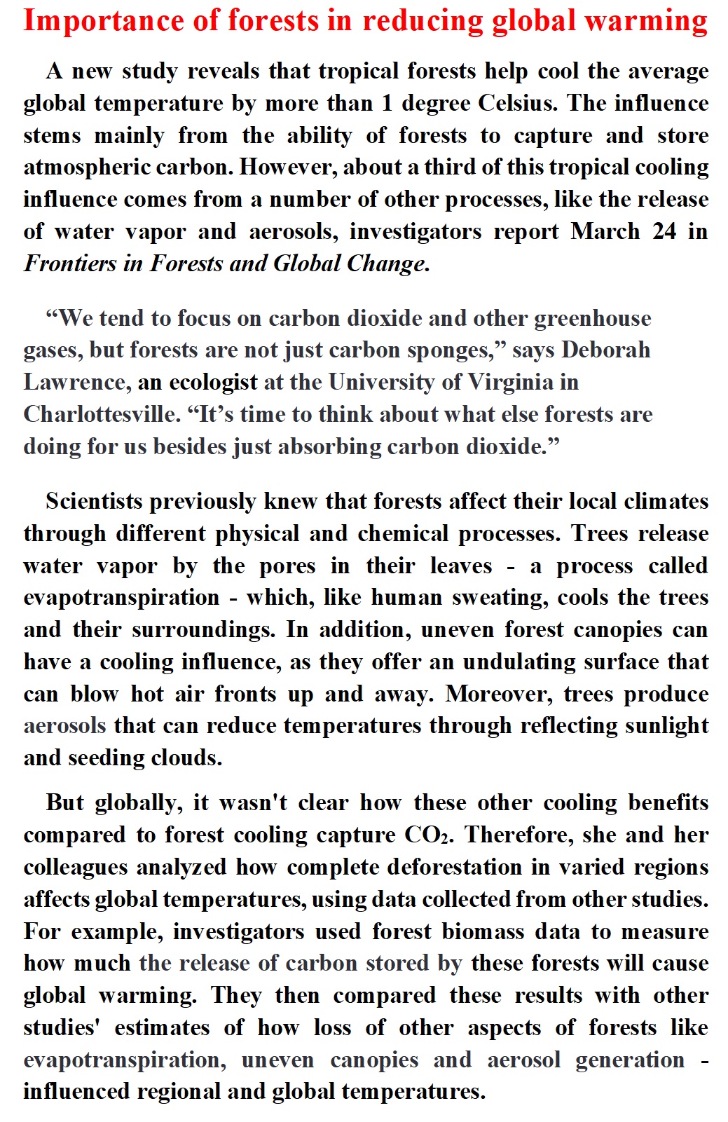 Importance of forests in reducing global warming